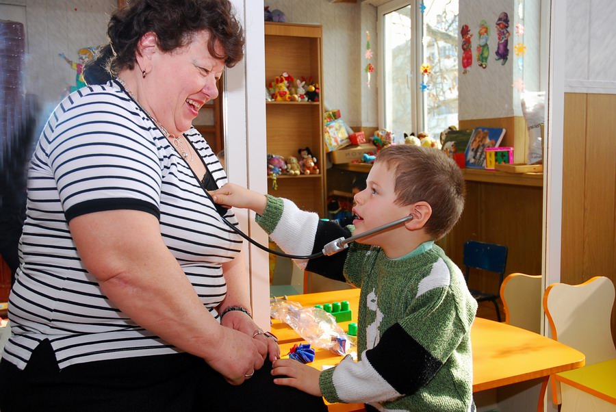 Desene din poveşti, prinţese, ciuperci uriaşe, flori, culori o mie, toate îmbracă pereţii ce ţin la un loc universul micuţilor. Doamna mă întâmpină în capul scărilor, are o privire caldă şi mă face să mă simt binevenită. Înăuntru-i zarvă mare, doar cei mici se opresc pentru o secundă curioşi să vadă cine a venit pe la ei. În grupa specială de grădiniţă sunt 11 copii cu vârste cuprinse între 4 şi 11 ani, unul dintre ei are un handicap mediu, iar ceilalţi 10 au un handicap grav (autism sau sindromul Down, cu deficienţe motorii) şi au nevoie de un însoţitor.