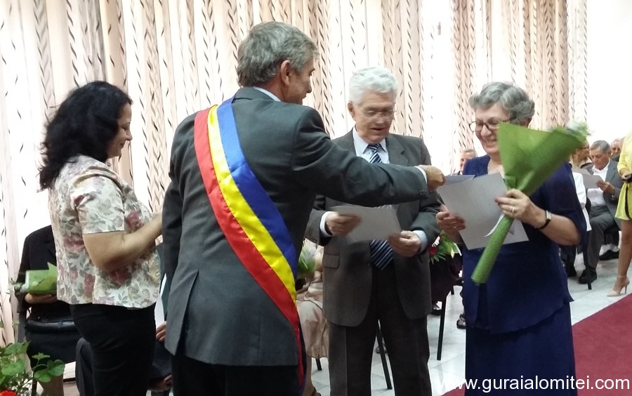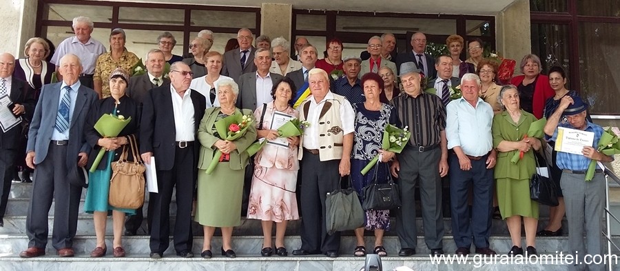 Familiile au fost întemeiate în 1966 şi pentru că au rezistat până azi au fost invitate la Primărie pentru a marca împlinirea unei jumătăţi de veac, împreună. „Vreau să vă felicit şi să vă urez sănătate, cât de multă se poate, să vă bucuraţi de familie, de copii, de strănepoţi” le-a urat maestrul de ceremonii, primarul Alexandru Stoica.