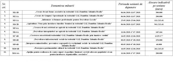 * Asociatia GAL DANUBIUS IALOMITA-BRAILA isi rezerva dreptul de a modifica acest Calendar in functie de contractarea proiectelor selectate in sesiunile sus-mentionate si de avizul primit de la Autoritatea de Management DG AM PNDR.