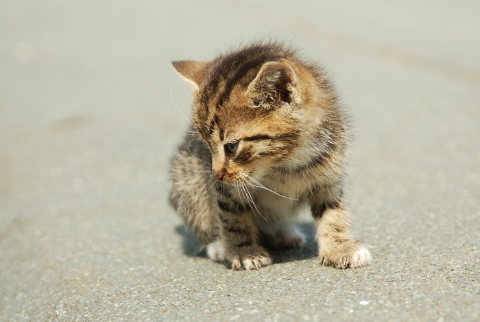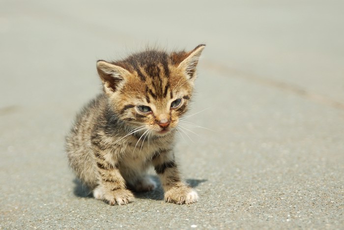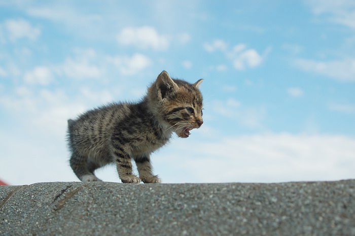 Domnisoara din imagini se plimba azi-dimineata tare abatuta pe soseaua dintre Amara si Grivita, cam pe la jumatatea distantei. Probabil stapanul ei a lasat-o acolo ca sa scape de ea. Miorlaita avea deja ganduri sinucigase: statea in mijlocul soselei si nu se dadea la o parte deloc. Am luat-o, camioanele mari si rele nu opresc niciodata cand vad animale pe sosea. Tot drumul pana la Slobozia a miorlait, semn ca era tare flamanda, deci am oprit direct la pet-shop, de unde i-am luat papa-bun de pisici.