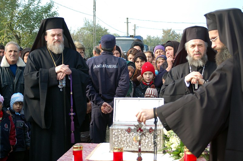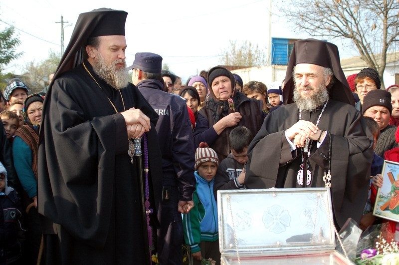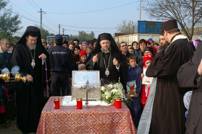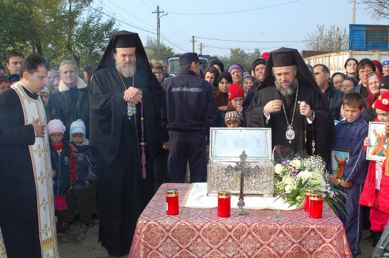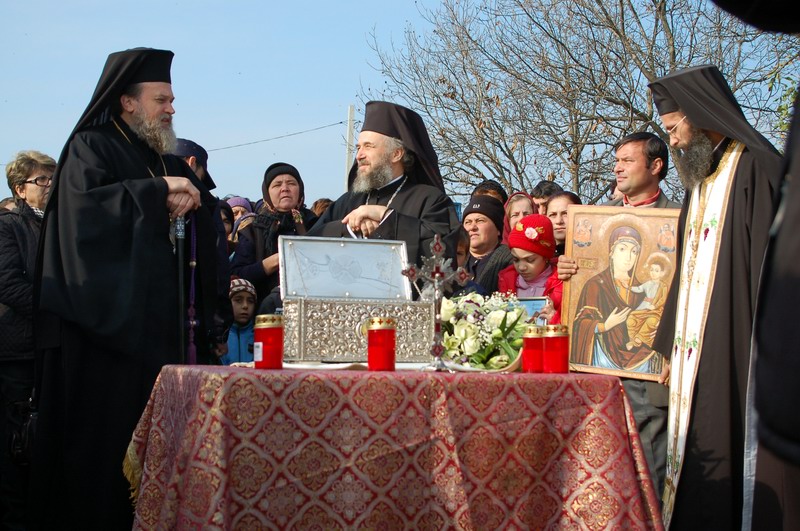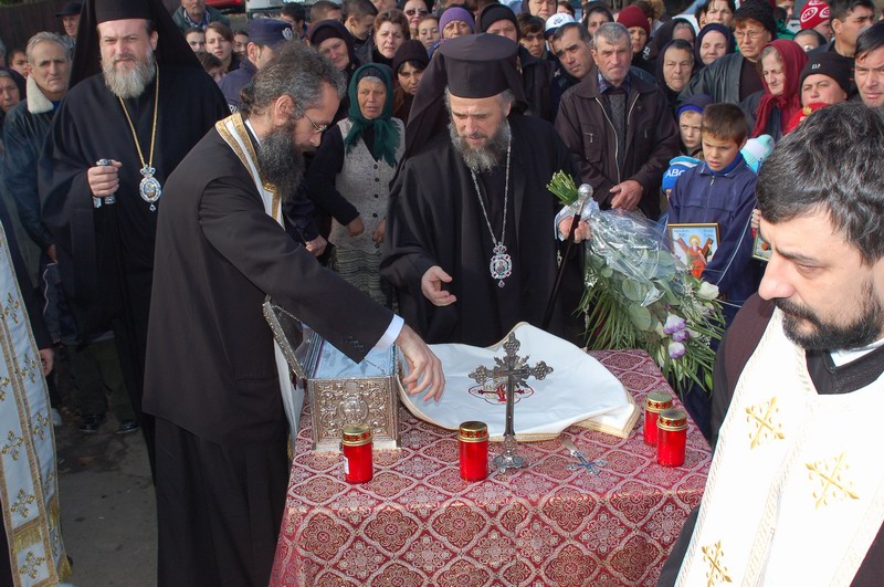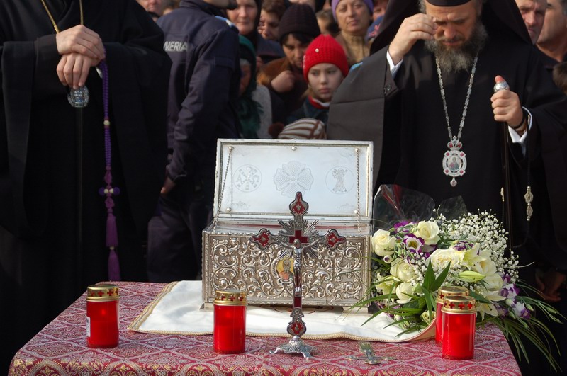 La preluarea sfantelor moaste s-a facut o slujba de cinstire si binecuvantare.