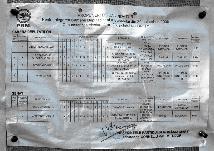 PRM Ialomiţa a racolat pentru alegerile parlamentare un ziarist şi un baron local. Pe listele de candidaţi afişate la Prefectura Ialomiţa, în dreptul filialei Partidului România Mare sunt trecuţi Gheorghe Savu şi Enciu Bobârniche.