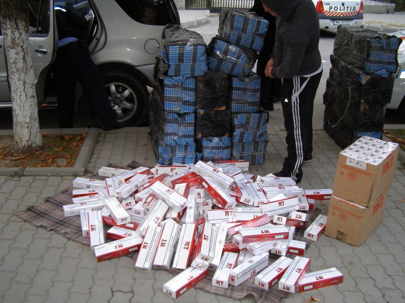 Cu ocazia controlului efectuat, au fost găsite pe bancheta din spate a autoturismului colete ambalate în cutii din carton, în care se aflau 990 cartuşe ţigări.