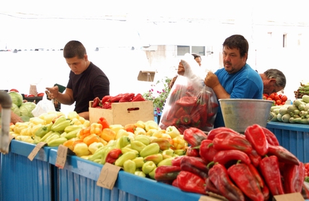 În piaţa Mare din Slobozia preţurile legumelor au scăzut la 80 de bani roşiile, un leu Kg de vinete şi 2 lei ardeiul gras. Foarte căutaţi sunt acum şi pepeni care se vând cu 50 de bani cei verzi şi un leu/Kg cei galbeni.
