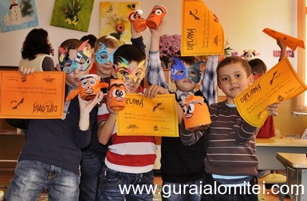 Toţi elevii grupei pregătitoare A au primit diplome din partea mentorilor de la Colegiul Naţional Mihai Viteazul şi s-au îndulcit cu bomboane de ciocolată.
