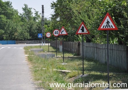 Ieri, cinci muncitori săpau gropi pentru amplasarea altor semne de circulaţiela Patru Fraţi, sat care se întinde pe o lungime de puţin peste2 kilometri.