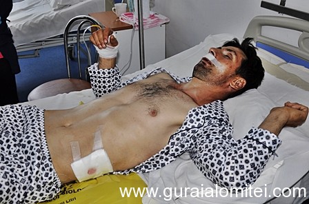 Tot de pe patul de spital, Marian Ungureanu, de 38 de ani, povesteşte că în timp ce poliţia îi transporta spre post i-a spus şoferului să-i ducă la spital, dacă vrea să nu le moară în maşină: