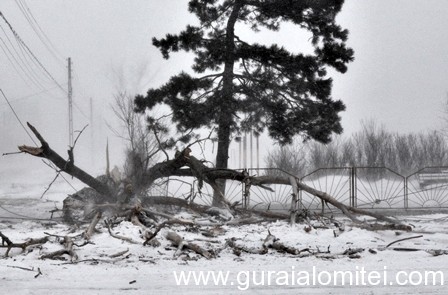 Şase copaci au fost smulşi de rafalele de vânt în doar câteva ore de la pornire viscolului în municipiul reşedinţă de judeţ.