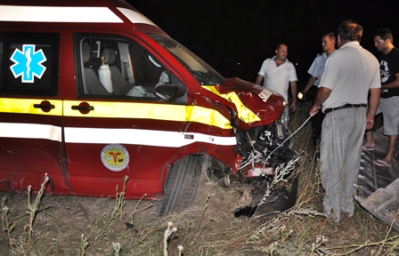 Autospeciala transporta un tânăr rănit grav, dintr-un accident rutier produs între Movila şi Platoneşti, către spitalul judeţean din Slobozia, iar la ieşirea din Ograda, în dreptul staţiei PECO, a intrat în coliziune cu un autoturism al cărui şofer a virat spre benzinărie fără să se asigure.